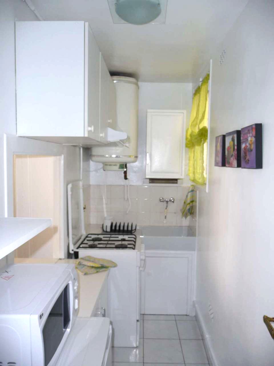spécialiste parisien. L'entrée, la cuisine, la salle de bains Une petite entrée avec porte-manteaux, miroir haut et fenêtre