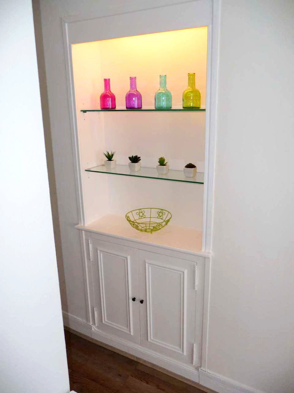 spécialiste parisien. L'entrée, la cuisine, la salle de bains Une petite entrée avec porte-manteaux, miroir haut et fenêtre
